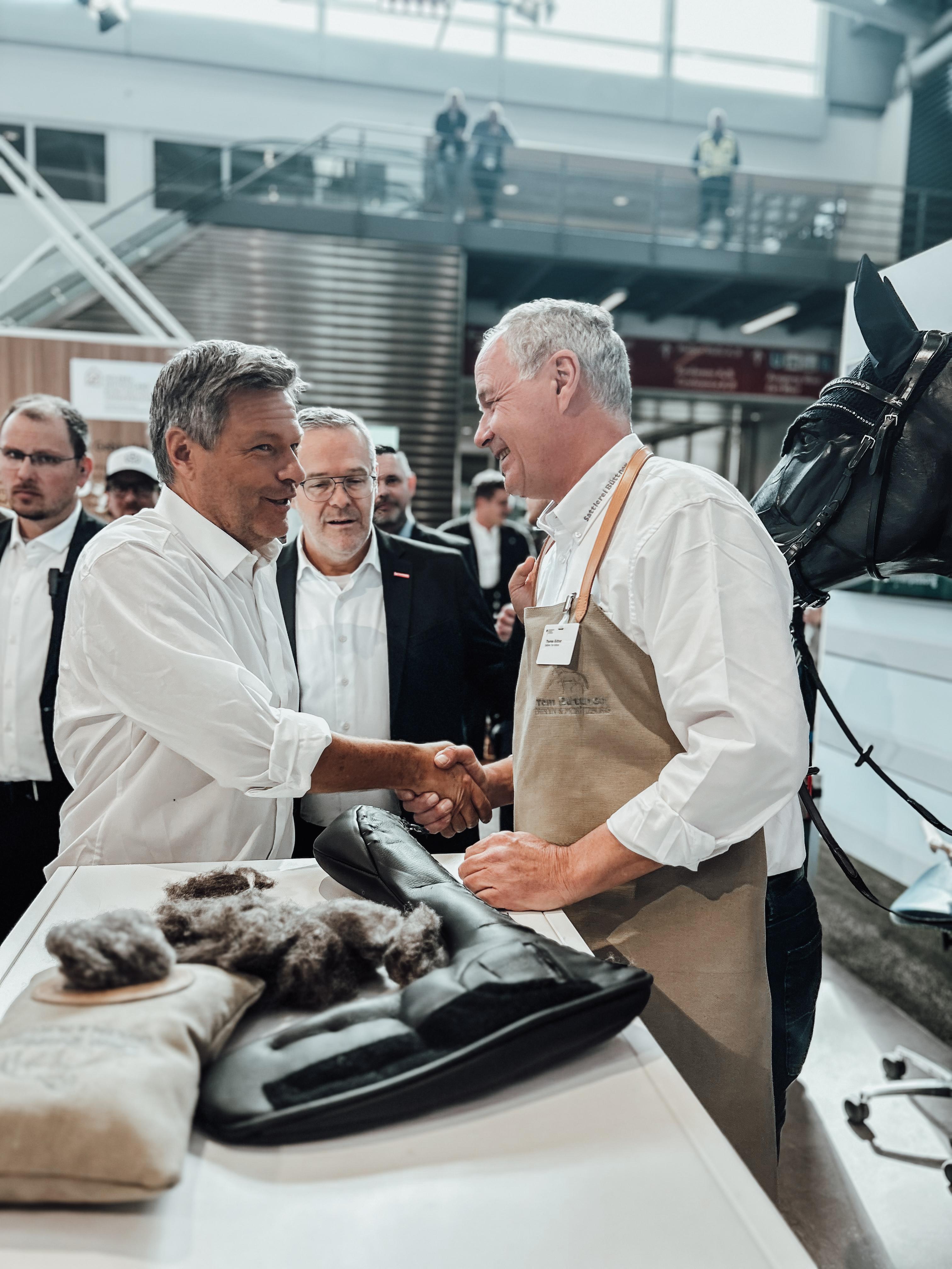 Heute wurde die Internationale Handwerksmesse (IHM) 2025 feierlich von Wirtschaftsminister Robert Habeck eröffnet. Besonders erfreulich war sein Besuch an unserem Messestand, wo er sich eingehend über das Sattlerhandwerk, unsere Innovationen und die zukünftigen Entwicklungen in der Branche informierte.