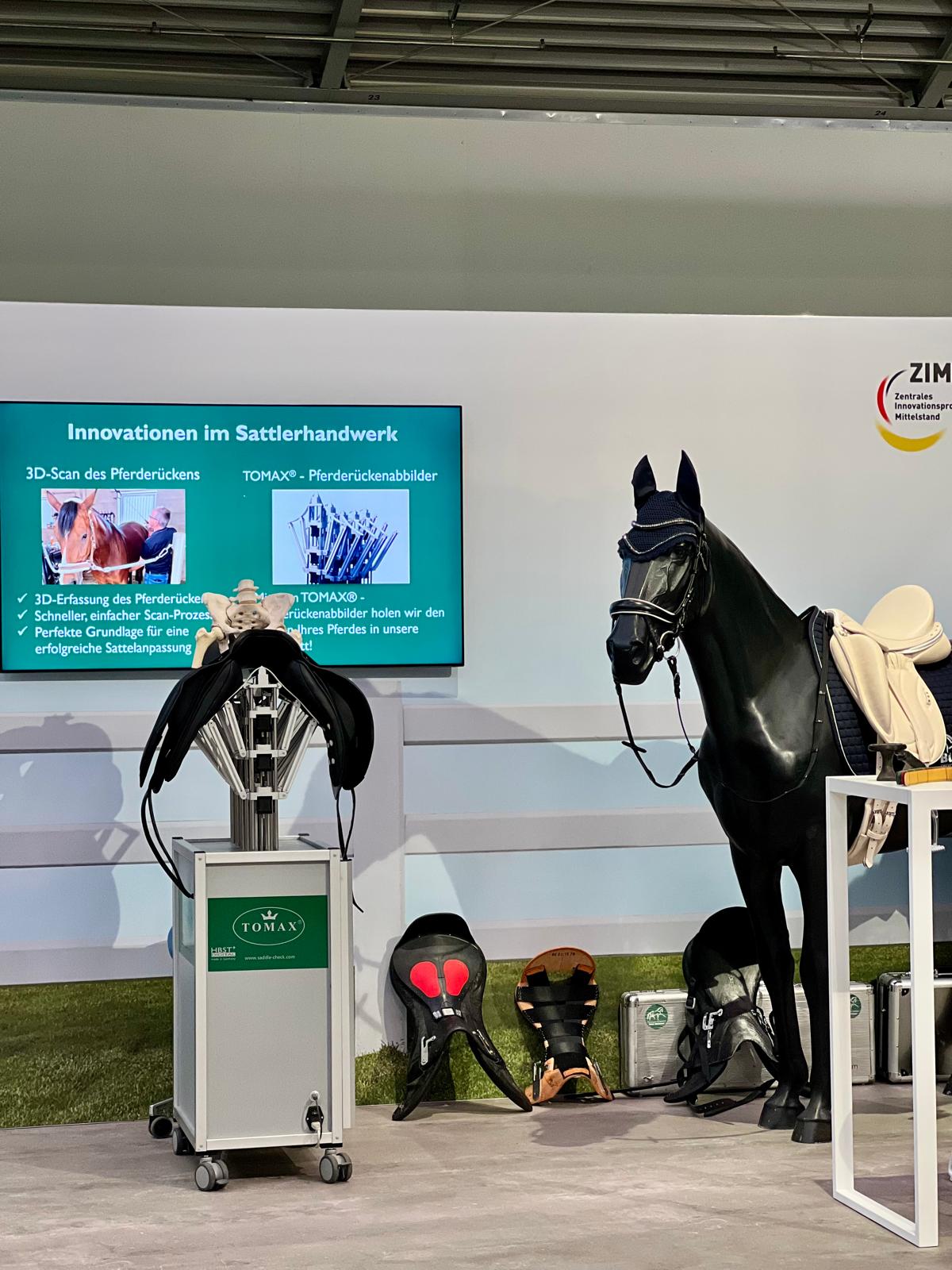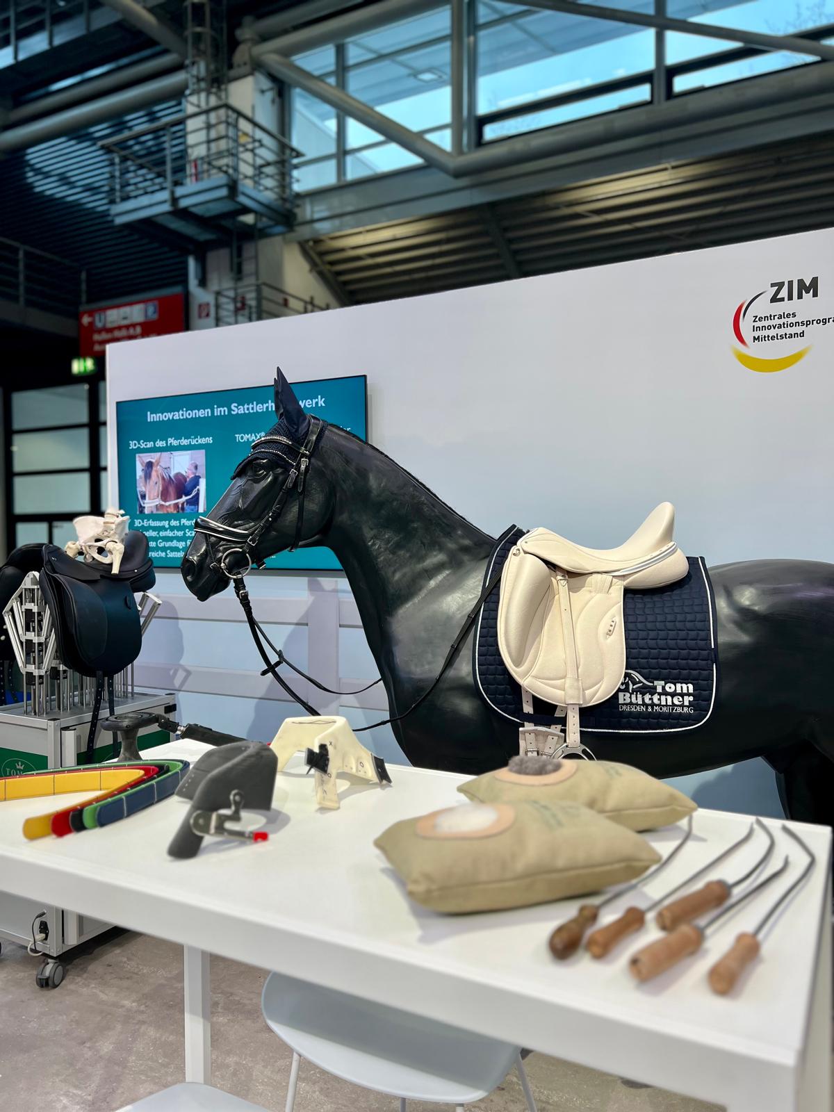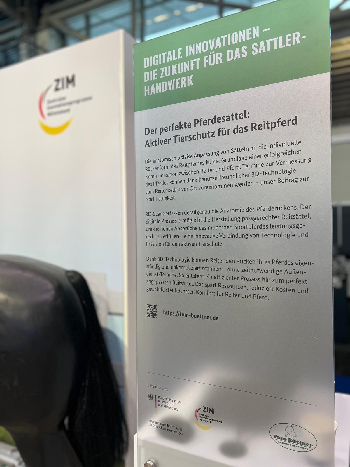 Ein zentrales Thema unserer Messepräsentation ist die Umsetzung innovativer ZIM-Projekte, die durch das BMWK gefördert wurden. Dazu gehört unter anderem die dreidimensionale Abbildung von Pferderücken mithilfe eines 3D-Scans, die auf dem patentierten Rückenabbilder der Sattlerei Tom Büttner visualisiert wird. Zudem stellen wir aktuelle Forschungsprojekte zur Implementierung von 3D-Druckverfahren und additiver Fertigung im Sattlerhandwerk vor.